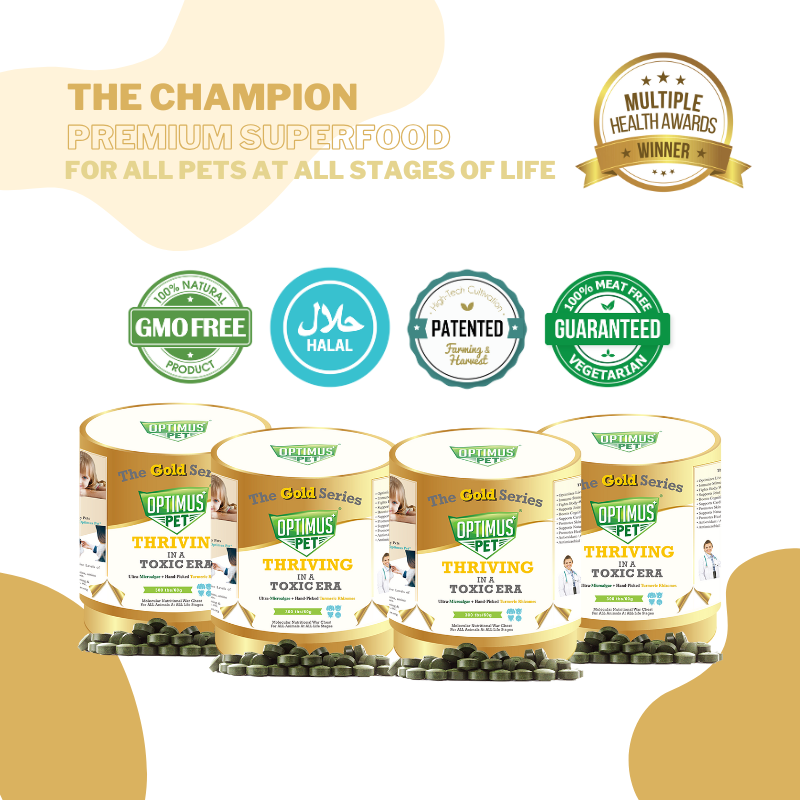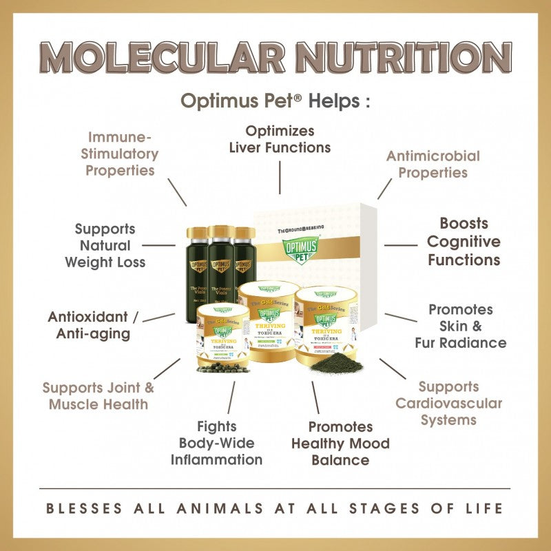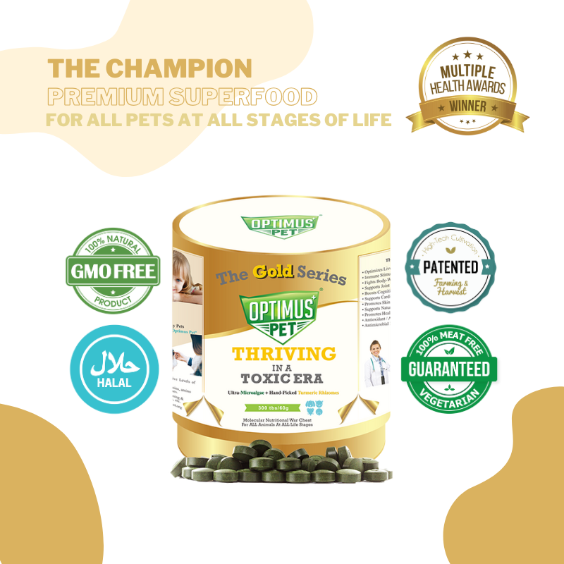 Unlike isolated vitamins, there is no real fixed dosage for vegetable source food like Optimus Pet®. You gradually increase serving size according to your pet's comfort level.